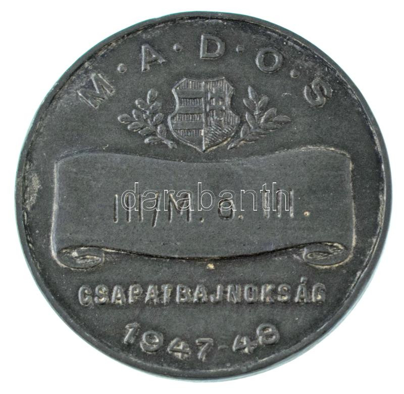 1948. "MADOS - III/M. o. III. Csapatbajnokság" Zn díjérem to... https://www.darabanth.com/hu/473-Gyorsarveres/473.0/Numizmatika/Sportdijak-es-sport-emlekermek~1500012/1948-MADOS-IIIM-o-III-Csapatbajnoksag-Zn-dijerem-tokban-40mm-TAU~II3205347