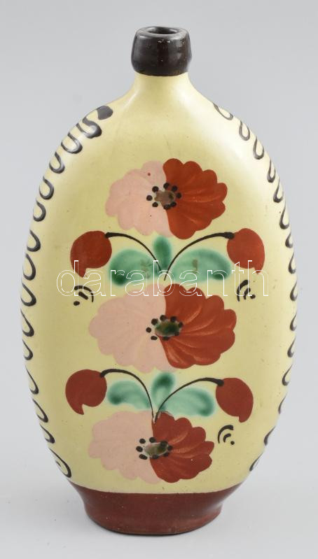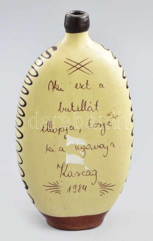 Leírás: Butéla, feliratos, humoros. Karcag, 1984 Mázas kerámia, kézzel festett, hibátlan 21 cm