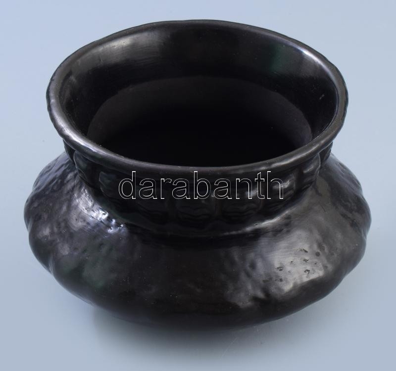 Leírás: Dósa-Pardi Szentes fekete kerámia kaspó, jelzett, kopással, d: 17 cm, m: 13 cm