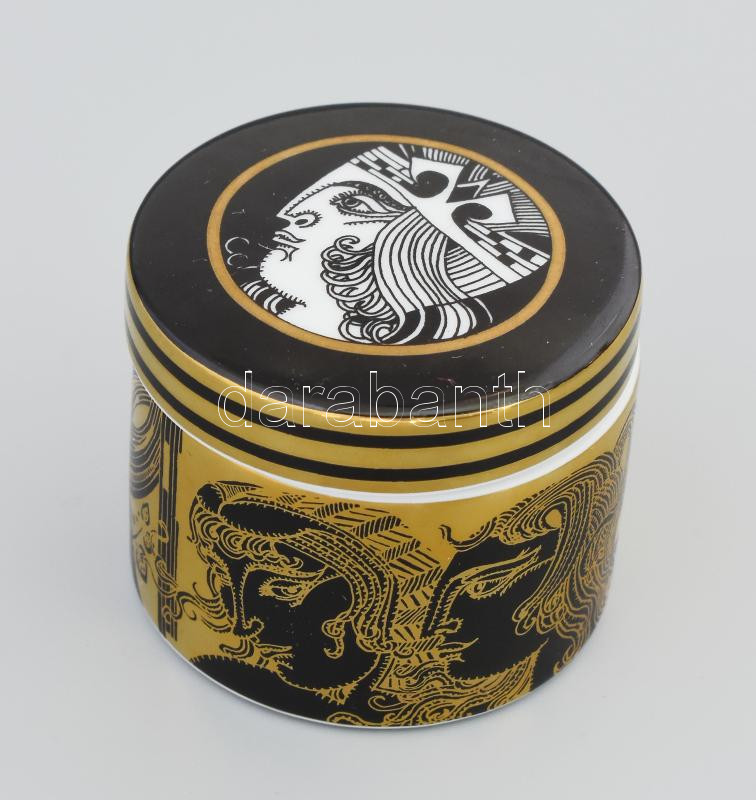 Leírás: Hollóházi Szász Endre által tervezett mintával díszített porcelán tégely, jelzett, m: 5,5 cm
