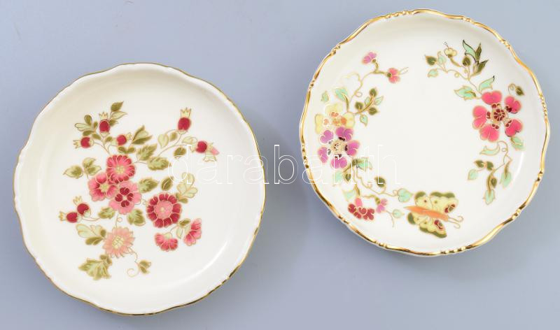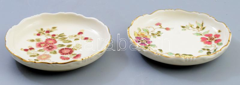 Leírás: Zsolnay virágmintás + pillangó mintás ékszeres tálkák, jelzett, hibátlan, d: 12 cm