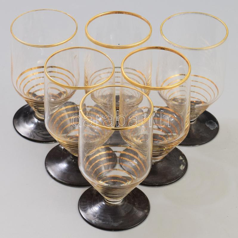 Leírás: 6 darab aranycsíkozott retro pohár, kopott, m: 10 cm