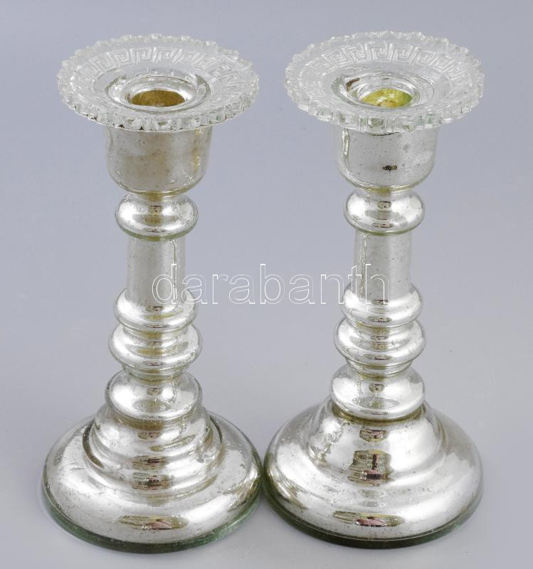 Leírás: Antik foncsorüveg gyertyatartó pár, m: 19,5 cm