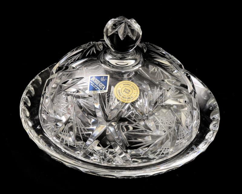 Leírás: Bohemia ólomkristály vajtartó, címkével jelzett, d: 14 cm