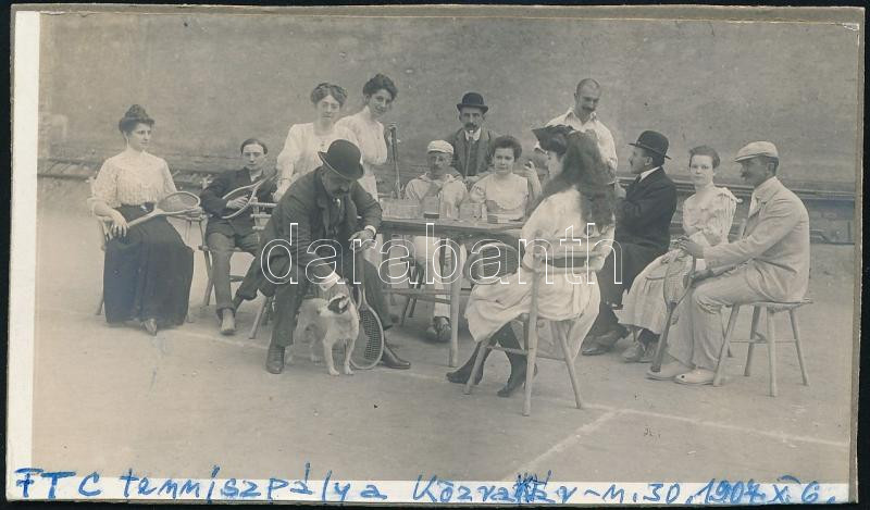 1907 FTC teniszpályán készült csoportkép, keményhátú fotó, feliratozva... https://www.darabanth.com/hu/474-Gyorsarveres/474.0/Fotomuveszet/Foto~500023/1907-FTC-teniszpalyan-keszult-csoportkep-kemenyhatu-foto-feliratozva-vagott-karton-6-5x10-5-cm~II3216408