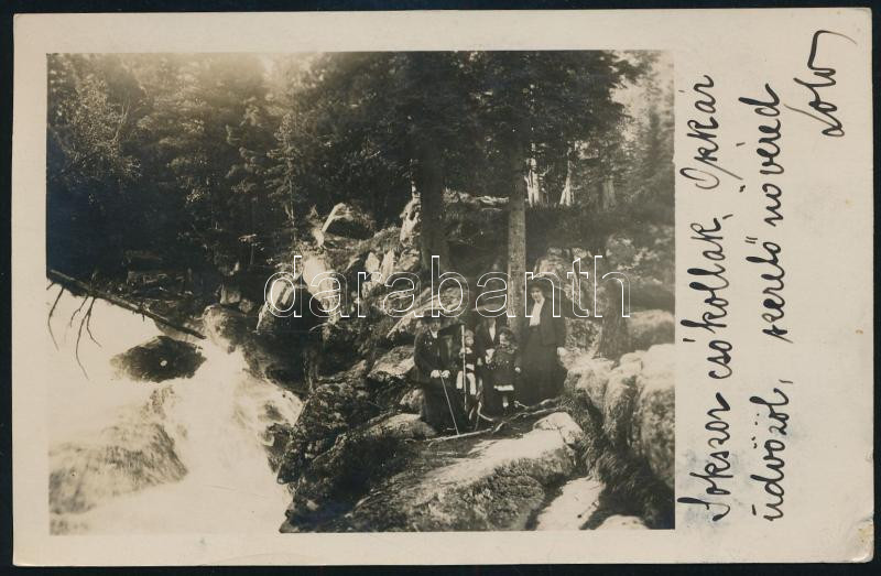 1910 Tátra, Tarpataki vízesés, kirándulók. Feliratozott fotólap https://www.darabanth.com/hu/474-Gyorsarveres/474.0/Fotomuveszet/Foto~500023/1910-Tatra-Tarpataki-vizeses-kirandulok-Feliratozott-fotolap~II3219973