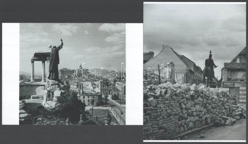 1948 Kertész Andor (később André Kertész) (1894-1985) magyar (később francia - amerikai) fotóművész felvételei a háború utáni romos Budapestről, 2 db modern nagyítás, jelzés nélkül, a néhai FOTÓ újság (1954-1989) archívumából, 15x21 cm és 21x15 cm