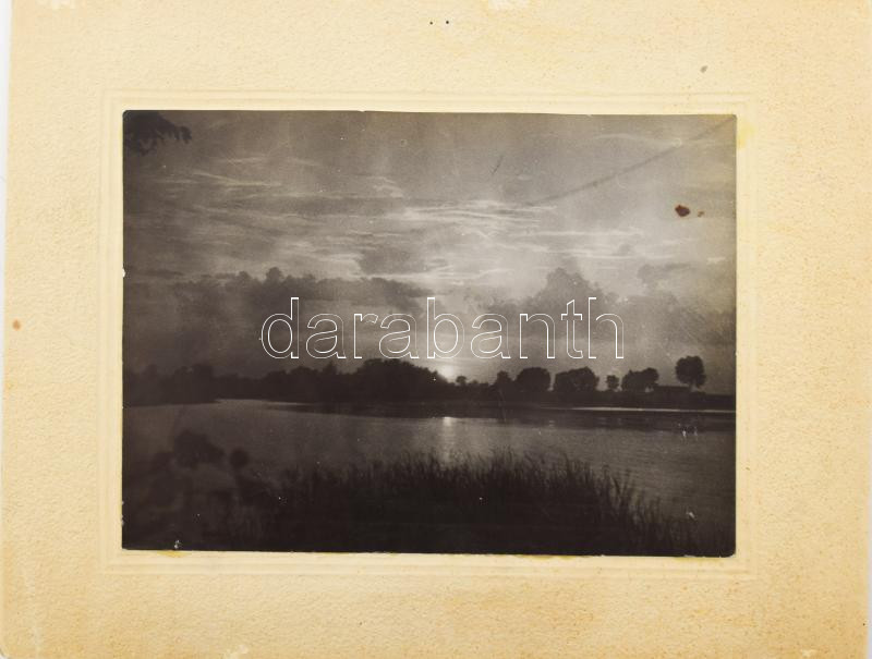 Leírás: 1953 Lengyel Péter: Naplemente a Dunán (Majosháza), kartonra kasírozott fotó, hátoldalon feliratozva, felületén törésnyom, 13×18 cm