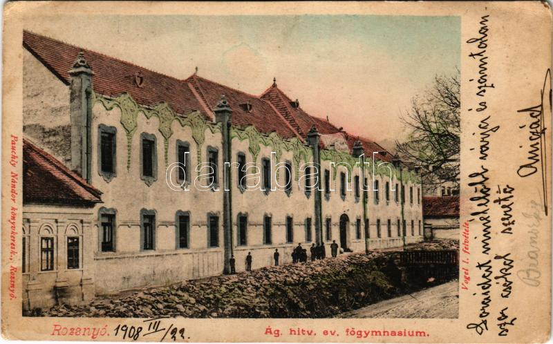 1908 Rozsnyó, Roznava; Evangélikus főgimnázium. Pauchly Nándor kiadása... https://www.darabanth.com/hu/474-Gyorsarveres/474.0/Kepeslapok/Felvidek~2000007/1908-Rozsnyo-Roznava-Evangelikus-fogimnazium-Pauchly-Nandor-kiadasa-Vogel-I-felvetele-~II3215621