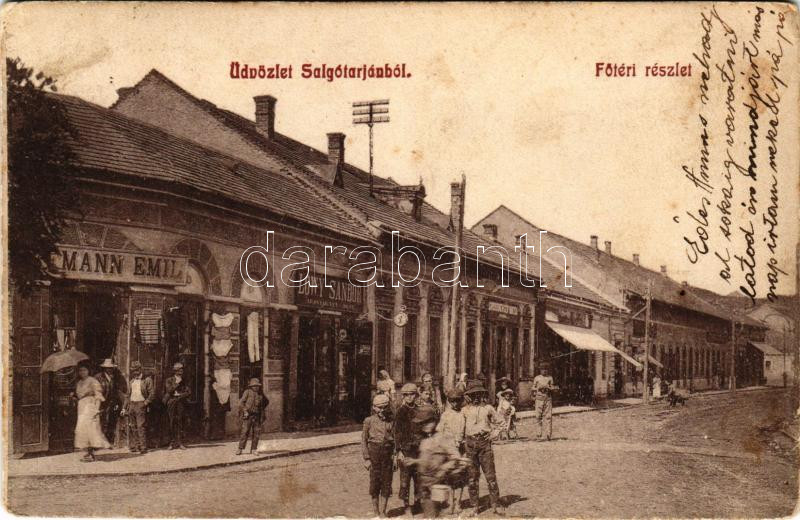 Leírás: 1909 Salgótarján, Fő tér, Löwy Sándor, Grossberger Miksa utóda üzlete. Singer Lajos kiadása (kopott sarkak / worn corners)
