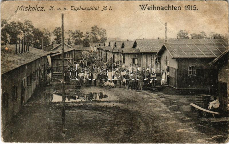 Miskolc, Osztrák-magyar katonai tífuszkórház 1915 karácsonyán, barakko... https://www.darabanth.com/hu/474-Gyorsarveres/474.0/Kepeslapok/Magyarorszag~2000005/Miskolc-Osztrak-magyar-katonai-tifuszkorhaz-1915-karacsonyan-barakkok-KuK-Typhusspital-No~II3219737