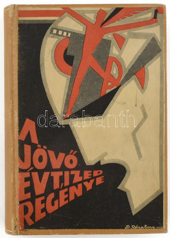 A jövő évtized regénye. A "Magyar Hírlap" újévi ajándékkönyve. Bp.,[1930], Magyar Hírlap,(Globus-ny.) 351+1 p. Róna Emmy (Emy) (1904-1988) grafikusművész avantgárd könyvborítójával. Írók, tudósok, orvosok válaszoltak a szerkesztő azon kérdésére, hogy mit hoz majd az 1930-as évtized. Móra Ferenc, Ignotus, Zsolt Béla, Marczali Henrik, Louis Blériot, Bálint Lajos, Hevesi Sándor, Lovik Károly, Pásztor Mihály és mások írásaival. Modern, aranyozott gerincű vászonkötésben, kiadói papír borítót ráragasztották, tartalomjegyzékben ceruzás jelölésekkel.