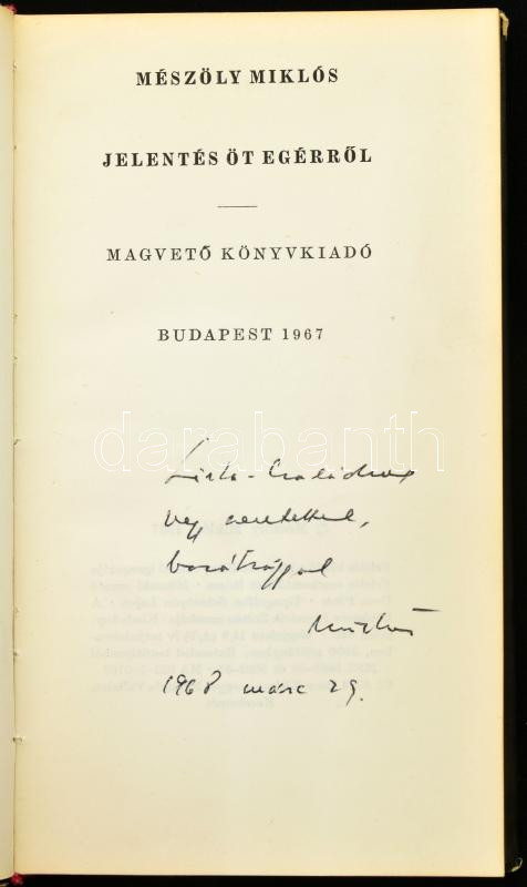 Mészöly Miklós: Jelentés öt egérről. Első kiadás. DEDIKÁLT példány.