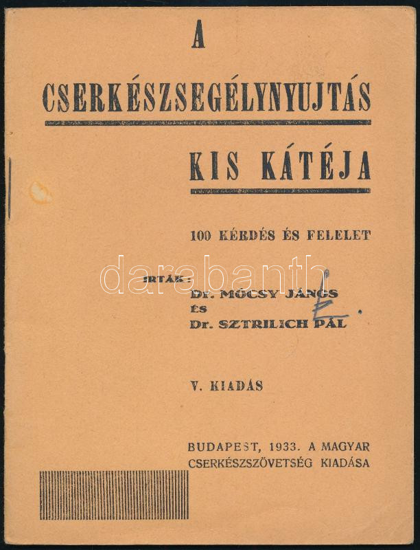 1933 A cserkészsegélynyújtás kis kátéja, 100 kérdés és felelet, rajzol... https://www.darabanth.com/hu/474-Gyorsarveres/474.0/Mutargy-papirregiseg-egyeb/Cserkesz~1000016/1933-A-cserkeszsegelynyujtas-kis-kateja-100-kerdes-es-felelet-rajzolt-kepekkel-szep-a~II3220278