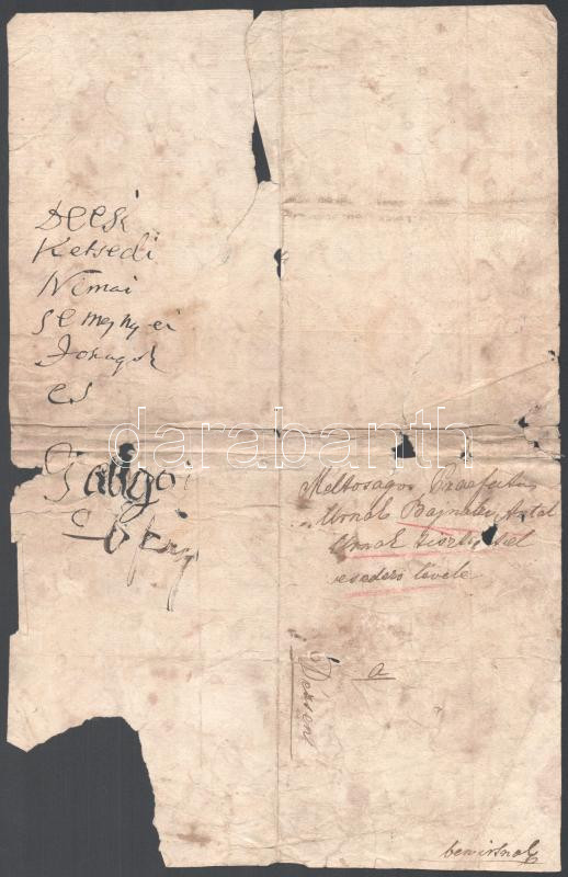 cca 1780 Dés, jobbágyok esedezése Bajnótzi Antal prefectus úrnak melyben a parasztok kérik, hogy zsidók helyett a grófné inkább nekik adja árendába a földjét, hisz az ő pénzük is "van olyan jó mint a zsidóé" Sérüléssel