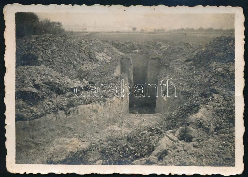 Leírás: 1940 Erdélyi bevonulás, "oláh" harci árok, hátoldalon feliratozott fotó, 6×9 cm