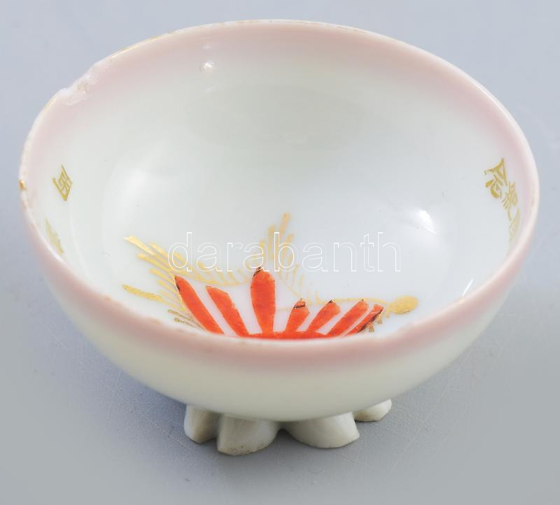 Leírás: Japán porcelán katonai szakés csésze. cca 1940-1944, 15. gyalogos hadosztály, sérüléssel, d: 5,5 cm