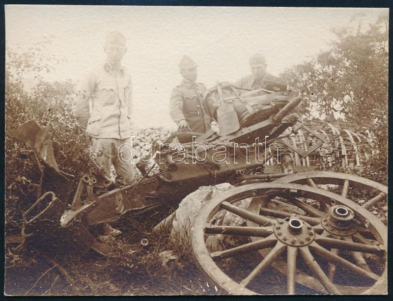cca 1917 Kilőtt katonai ágyú darabjai magyar katonákkal a fronton, fot... https://www.darabanth.com/hu/474-Gyorsarveres/474.0/Mutargy-papirregiseg-egyeb/Militaria~1000019/cca-1917-Kilott-katonai-agyu-darabjai-magyar-katonakkal-a-fronton-foto-szep-allapotban-8x11-cm~II3220412