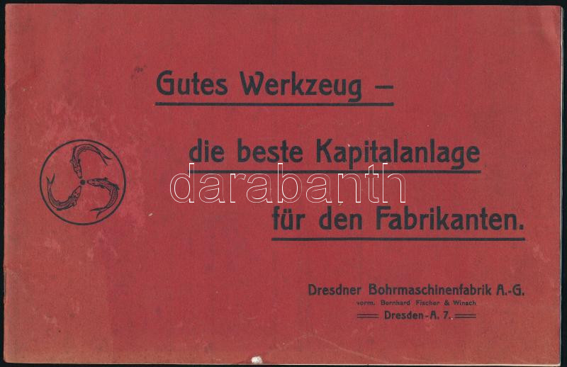 cca 1900-1910 Dresdner Bohrmaschinenfabrik A.-G. német fúrógépgyár képes katalógusa / árjegyzéke. Fekete-fehér illusztrációkkal, német nyelven. Kiadói tűzött papírkötés, 30 p.