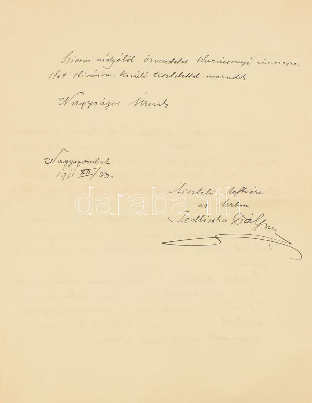 1911 Jedlicska Pál (1844-1917) római katolikus plébános, kanonok, egyházi író, helytörténész, Nagyszombat (Tyrnava, SK) autogárf levele, melyben Fránek Benedek: A borsmonostori apátság az Árpádok korában c.- könyvet ajánlja