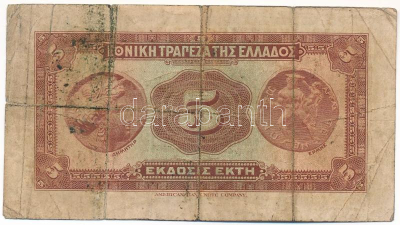 ... https://www.darabanth.com/hu/474-Gyorsarveres/474.0/Numizmatika/Kulfoldi-bankjegyek~1500017/Gorogorszag-1928-1926-5Dr-felulbelyegzessel-T-VG-folt-kis-szakadasGreece-1928-1926-5-Drachmai~II3218381