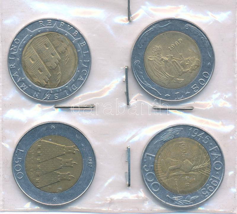 San Marino 1987-1995. 500L (4xklf) emlékkiadások T:AU,XF San Marino 1987-1995. 500 Lire (4xdiff) commemorative issues C:AU,XF