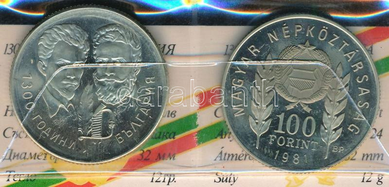 1981. 100Ft Cu-Ni-Zn + Bulgária 5L Cu-Ni-Zn "Bulgária 1300 éves" magya... https://www.darabanth.com/hu/474-Gyorsarveres/474.0/Numizmatika/Magyar-es-magyar-verdejelu-fem-es-ezustpenzek~1500009/1981-100Ft-Cu-Ni-Zn-plus-Bulgaria-5L-Cu-Ni-Zn-Bulgaria-1300-eves-magyar-bolgar-kozos-kiadas-~II3218754