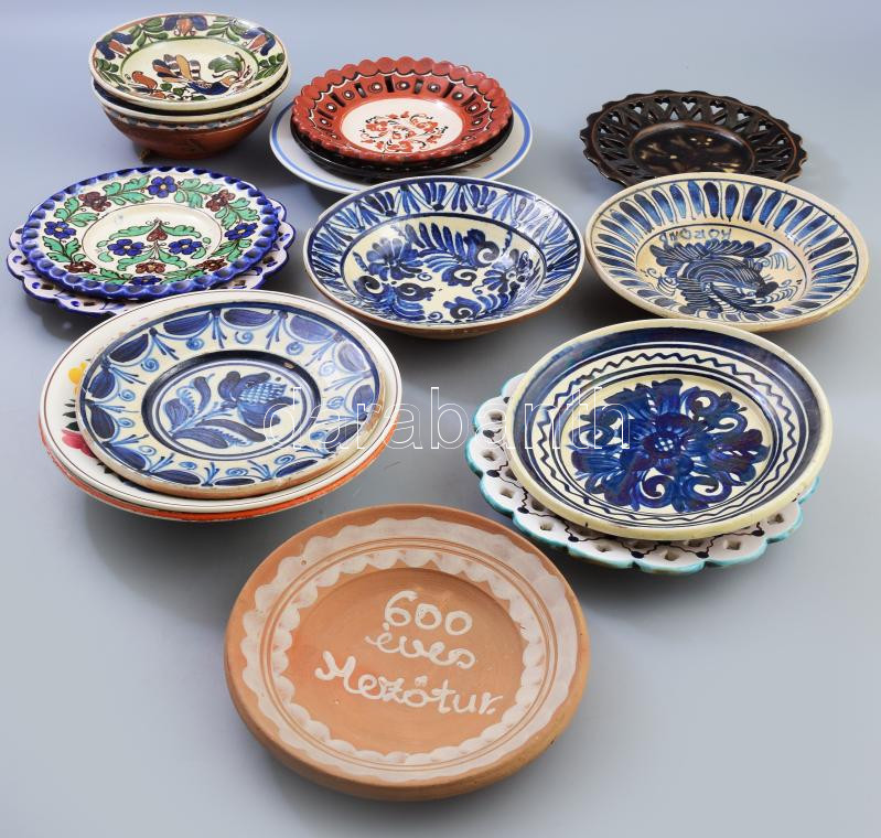 Leírás: Kb 30 db népies dísztányér. Kézzel festett kerámiák d:25 cm-ig különböző tájegységekről, jó állapotban