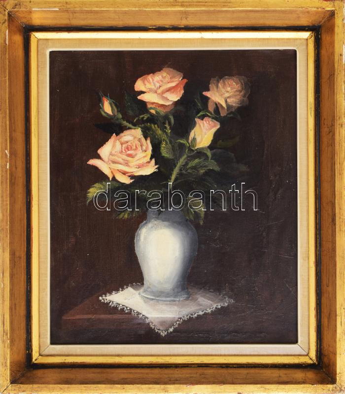 Jelzés nélkül: Rózsás csendélet. Olaj, vászon 30x35 cm keretben. https://www.darabanth.com/hu/475-Gyorsarveres/475.0/Festmenyek-es-grafikak/Festmenyek-es-grafikak-jelzessel-jelzes-nelkul~500003/Jelzes-nelkul-Rozsas-csendelet-Olaj-vaszon-30x35-cm-keretben~II3202858