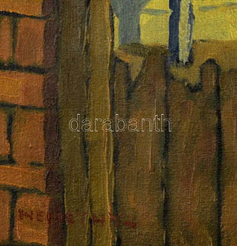 Leírás: Némethy jelzéssel (Némethy Béla?): Ház udvarán. Olaj, vászon. 30x40 cm. Dekoratív fakeretben.