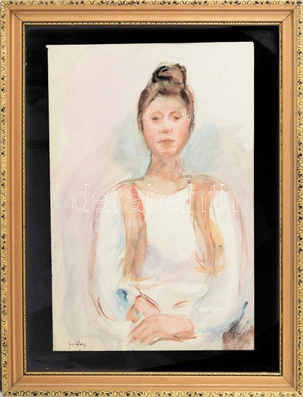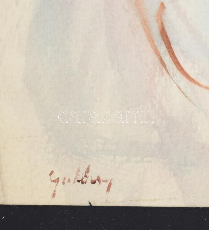 Leírás: Olvashatatlan (Gulácsy?) jelzéssel: Portré. Akvarell, papír. 39,5x26 cm. Dekoratív, üvegezett fakeretben.