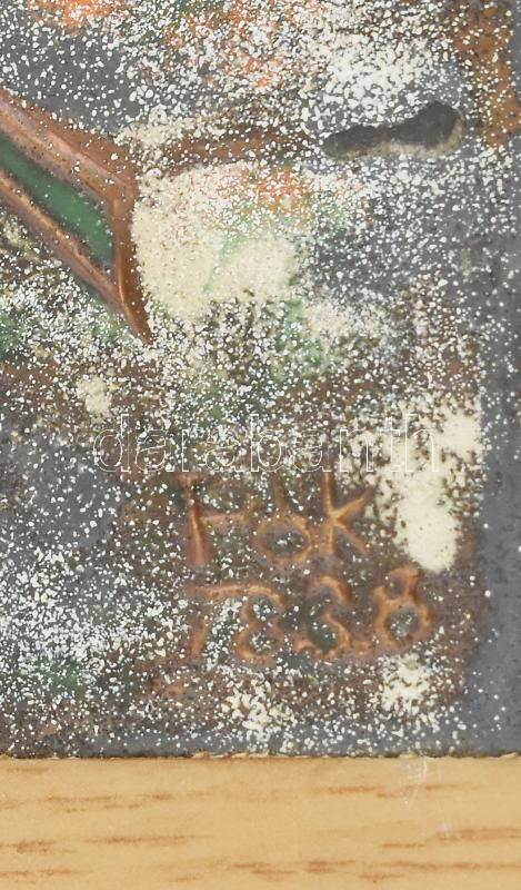 Leírás: Pók jelzéssel: Virágok. Tűzzománc, fém lemez, fakeretben, 20×9 cm
