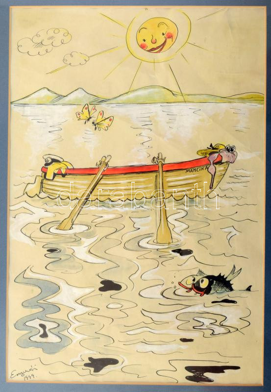Enyvvári Herbert (működött 1930-50 körül): Balatoni kaland (karikatúra... https://www.darabanth.com/hu/475-Gyorsarveres/475.0/Festmenyek-es-grafikak/Festmenyek-es-grafikak~500002/Enyvvari-Herbert-mukodott-1930-50-korul-Balatoni-kaland-karikatura-1949-Akvarell-tus-~II3228486