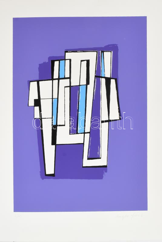 Leírás: Frank Magda (1914-1997): Konstruktivista kompozíció. Szitanyomat, papír, jelzett, számozott (6/40), 40x27,5 cm