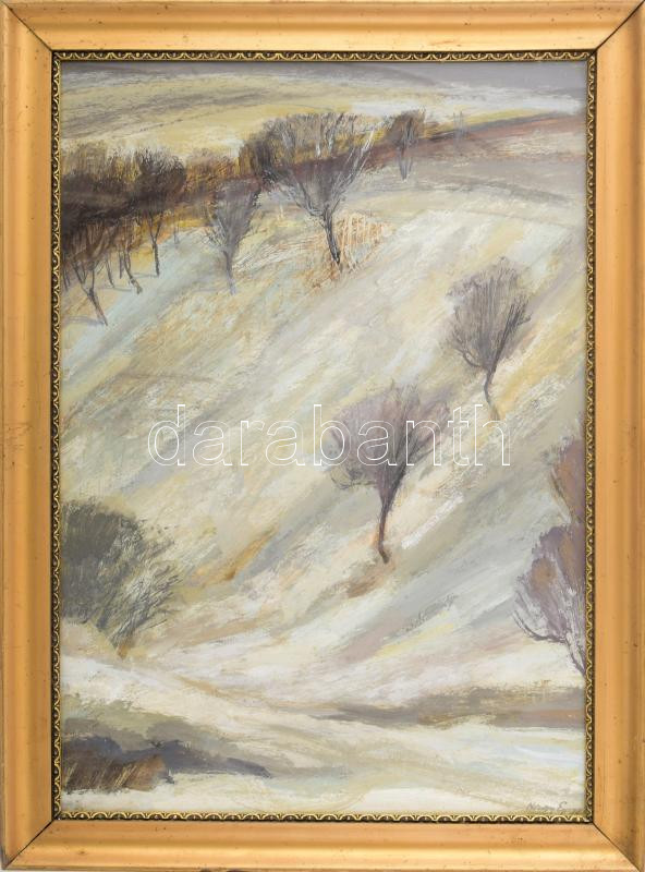Leírás: Nagy Ernő (1926-2017): Tél a Bükkben. Olaj, karton. Jelezve jobbra lent. 50x35 cm. Dekoratív, üvegezett fakeretben.