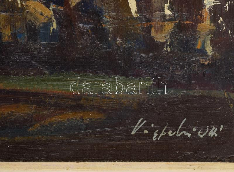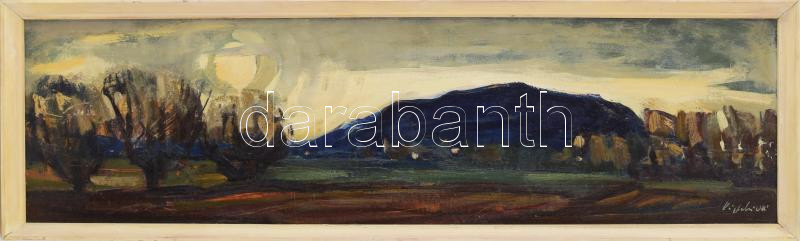 Leírás: Vágfalvi Ottó (1925-2015): "Somlóhegy". Olaj, farost, jelezve jobbra lent. Hátoldalán a művész autográf feliratával. Fakeretben, 20×75 cm