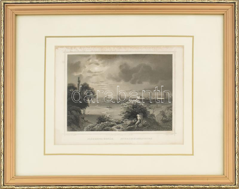 Ludwig Rohbock (1820-1883) - G. M. Kurz: Székesfejérvár. Acélmetszet, papír, jelzett a metszeten. Kissé foltos. Paszpartuban, üvegezett fakeretben, 12x18 cm.