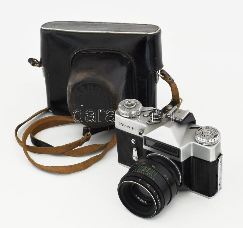 Zenit-E fényképezőgép, Helios-44 optikával, bőr tokjában, https://www.darabanth.com/hu/475-Gyorsarveres/475.0/Fotomuveszet/Fenykepezogepek-kamerak-kellekek~500014/Zenit-E-fenykepezogep-Helios-44-optikaval-bor-tokjaban-~II3224709