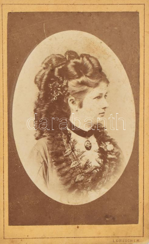 Leírás: cca 1870 Arad, Louis Drechsler műterméből vizitkártya, elegáns hölggyel. Hátulján ragasztónyom