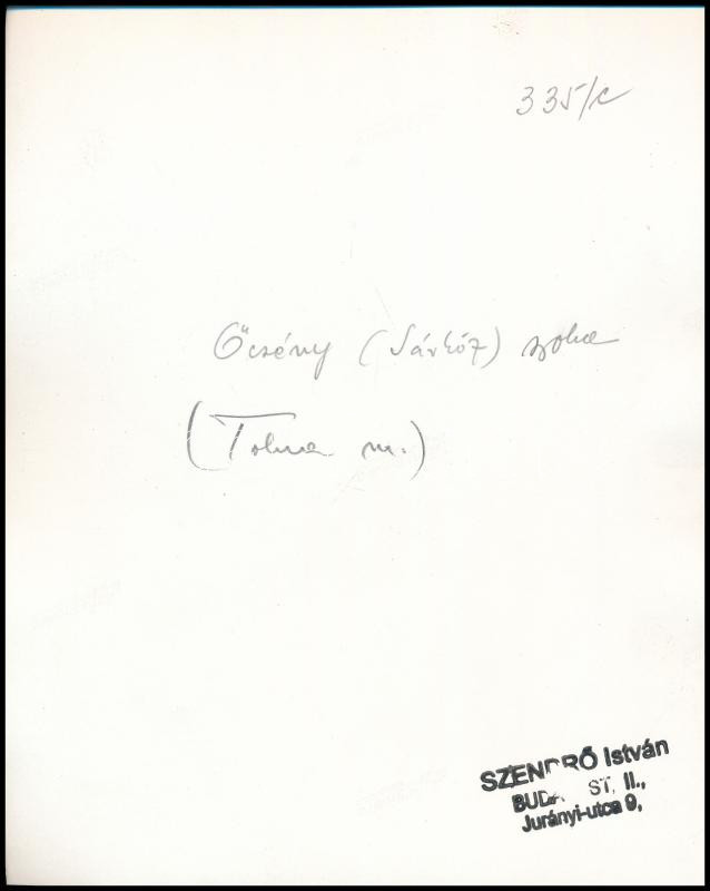 Leírás: cca 1930-1940 Szendrő István (1908-2000): Őcsény (Sárköz), rokka, nők népviseletben, hátoldalon feliratozott, pecséttel jelzett fotó, 23×17 cm