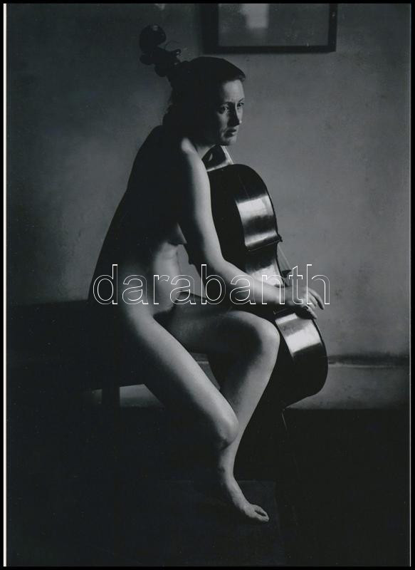 Leírás: cca 1960 ,,Boróka és a gordonka vonóra várva", szolidan erotikus felvétel, 1 db modern nagyítás, jelzés nélkül, 21x15 cm
