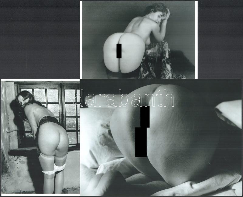 Leírás: cca 1960 ,,Popo-fotó", szolidan erotikus felvételek, 3 db modern nagyítás, jelzés nélkül, 15x21 cm és 10x15 cm