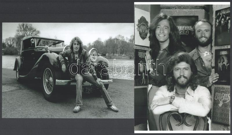 cca 1969 Bee Gees együttes, 2 db modern nagyítás, jelzés nélkül, a néhai Népművelési Intézet könnyűzenei referensének gyűjteményéből, 21x15 cm és 15x21 cm