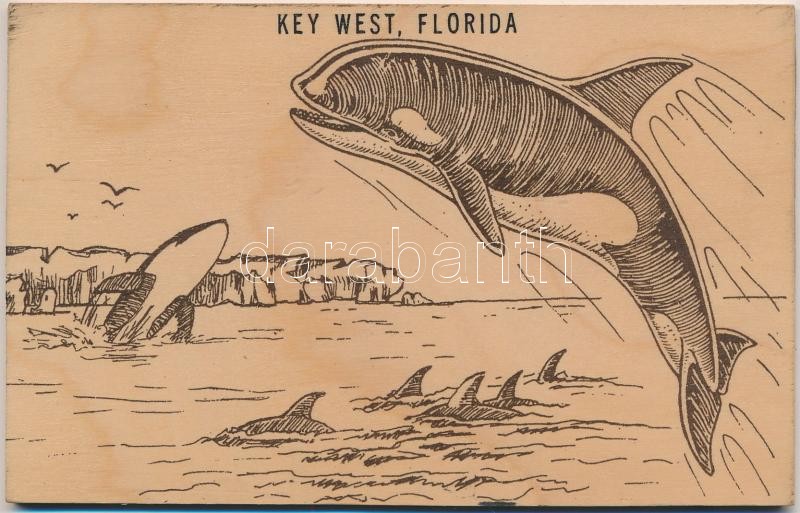 Key West (Florida), Dolphins. Durable Quality Wood Postcard https://www.darabanth.com/hu/475-Gyorsarveres/475.0/Kepeslapok/Amerikai-Egyesult-Allamok~1500037/Key-West-Florida-Dolphins-Durable-Quality-Wood-Postcard~II2348139