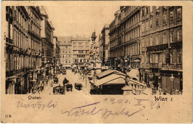 1900 Wien, Vienna, Bécs; Graben / street view, café, shops (fa) https://www.darabanth.com/hu/475-Gyorsarveres/475.0/Kepeslapok/Ausztria~1500044/1900-Wien-Vienna-Becs-Graben-street-view-cafe-shops-fa~II2924929