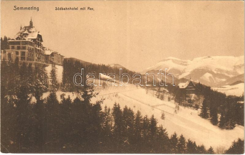 1912 Semmering, Südbahnhotel mit Rax / hotel, mountain peak in winter ... https://www.darabanth.com/hu/475-Gyorsarveres/475.0/Kepeslapok/Ausztria~1500044/1912-Semmering-Sudbahnhotel-mit-Rax-hotel-mountain-peak-in-winter-EK~II2344987