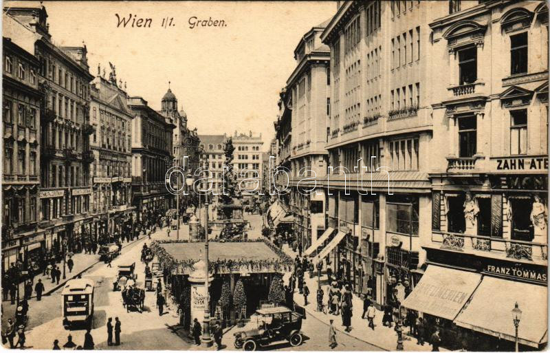 Wien, Vienna, Bécs I. Graben, Parfumerien Calderara Bankmann, Franz Tommas, Zahn Atelier, Graben Kaffee, Hochmuth & Gerstmann, Prix / street, autobus, automobile, shops, cafe