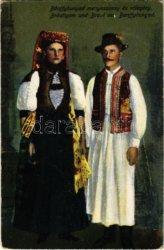 Bánffyhunyad, Huedin; Bánffyhunyadi menyasszony és vőlegény / Transylv... https://www.darabanth.com/hu/475-Gyorsarveres/475.0/Kepeslapok/Erdely~1500006/Banffyhunyad-Huedin-Banffyhunyadi-menyasszony-es-volegeny-Transylvanian-folklore-from-Huedi~II2988163