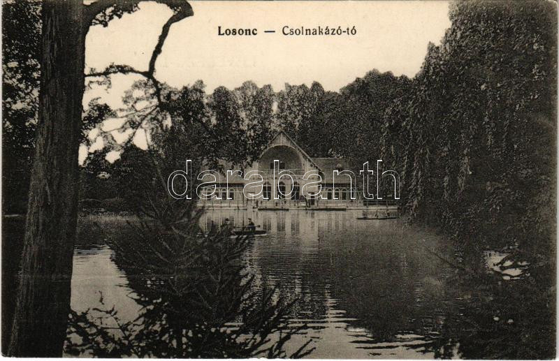 Leírás: Losonc, Lucenec; Csónakázótó. Greiner Simon kiadása / lake, rowing boats (EK)