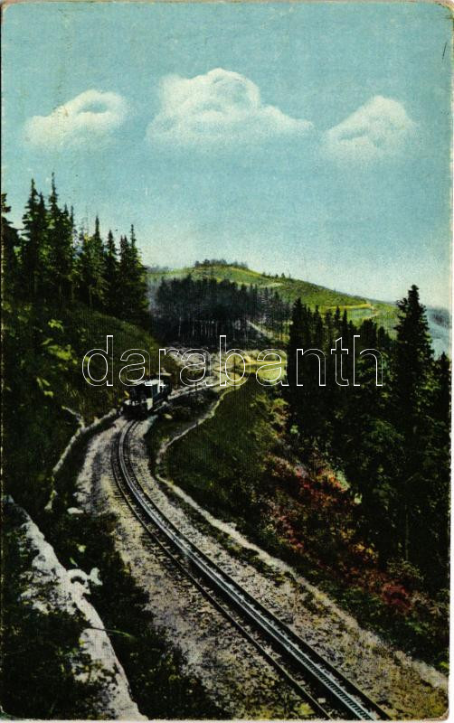Leírás: Tátra, Magas-Tátra, Vysoké Tatry; Csorba-tó, fogaskerekű vasút, vonat / Csorber-See Zahnradbahn / Ozubená dráha ke Strbskému plesu / cogwheel railway, train (EK)